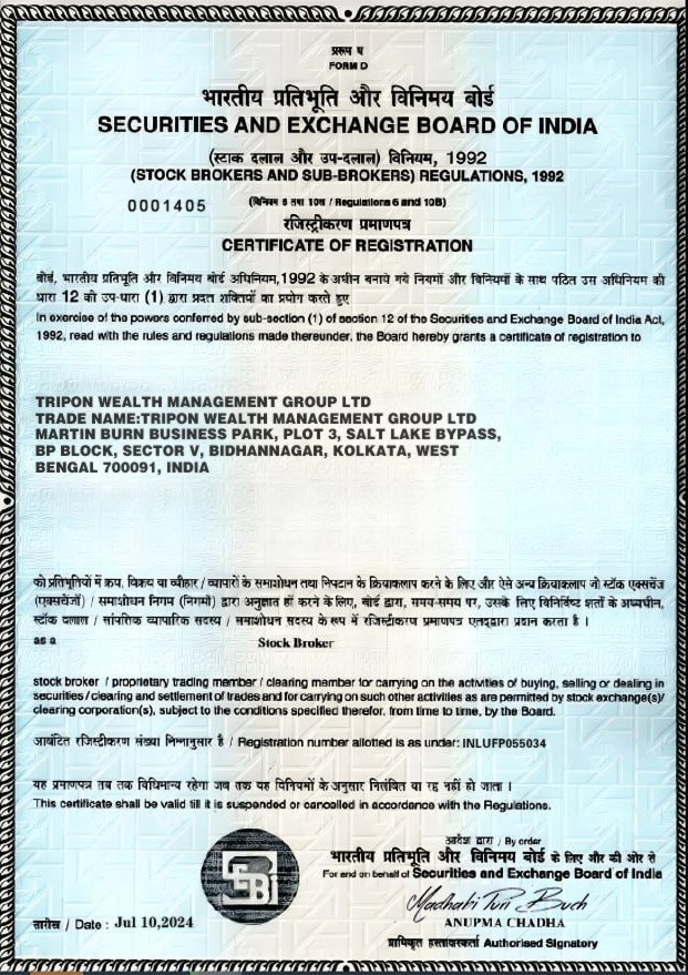 TRIPON WEALTH MANAGEMENT GROUP INC (hereinafter referred to as "TRIPON") is pleased to announce that the company has successfully obtained a license from the Securities and Exchange Board of India (SEBI). This important milestone marks TRIPON's further expansion into the Asian market and highlights the company's leadership in global wealth management.