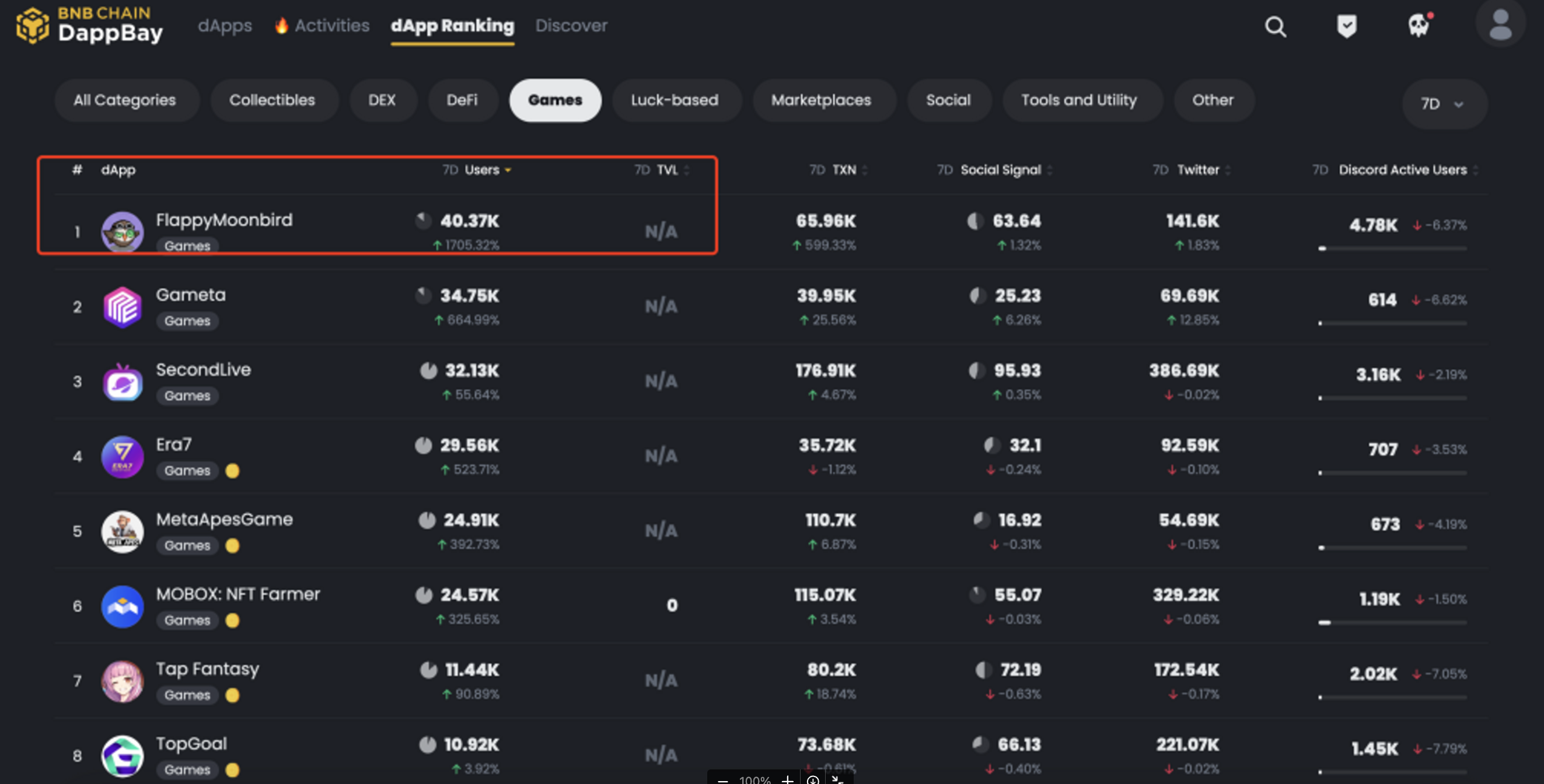 In such a depressive gaming market, we can still see that FlappyMoonbird ranks second in monthly active users on the BNBChain gaming leaderboard and holds a position within the Top 10 on the overall BNBChain leaderboard, showcasing impressive results. As more games are launched, the $FMB will become increasingly stronger and applicable, predicting a sustainable future of FlappyMoonbird.