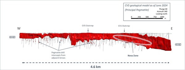 The Nova Zone is a subset of the CV5 Resource,proposed to be accessed via the same underground mining method targeting the overall PEA underground Resource of 39.8 Mt @ 1.54% Li2O (70% is Indicated,30% is Inferred Resource category respectively).