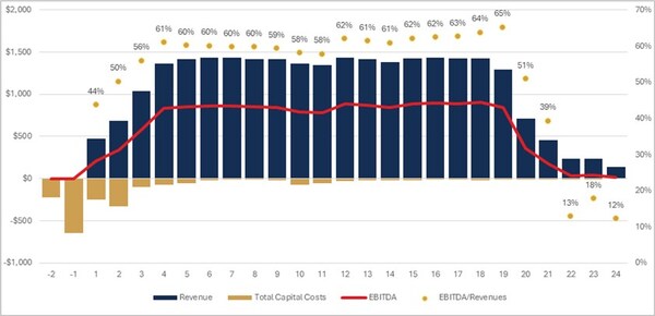 Estimated to indicatively generate approximately $8.3 billion in Project Cash Flow (unlevered) over LOM.