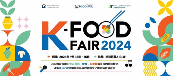 TAIPEI,Sept. 9,2024 -- The Korean wave continues to sweep across Taiwan,and the much-anticipated "K-Food Fair 2024" will be holdatTaipei Far Eastern Department Store,Xinyi,A13,for threedaysin September. The event is organized by aT Center Hong Kong (Korea Agro-Fisheries & Food Trade Corporation Hong Kong Branch). The booth design features bold and vibrant colors combined with traditional Korean patterns,which not only showcases traditional Korean culture but also adds a sense of fashion to the booth. The K-Food Fair Taiwan Station will feature a Korean ginseng promotion area,a Korean grape promotion area,a brand promotion area,a cultural experience area,and food stalls from 8 Taiwanese Korean food importers (Hanhua,Jingyong,Hanli,Hanying,Weichuang,Taiwan Bolian,Hansen,Guangfuyuan). In addition to bringing in popular Korean snacks and agricultural products such as kimchi,paste sauces,drinks,and alcohol,there will be daily food tastings of fish cakes,rice cakes,cold fried dumplings,kimchi pancakes,and other delicacies. Admissionfeeis free,so Korean food fans should come and experience it for themselves.