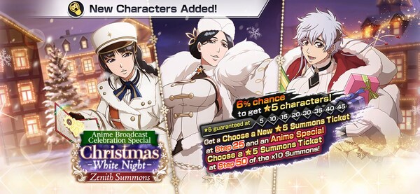 KLab Inc.,announced that its hit 3D action game Bleach: Brave Souls will be holding the Anime Broadcast Celebration Special: Christmas Zenith Summons: White Night from November 30.