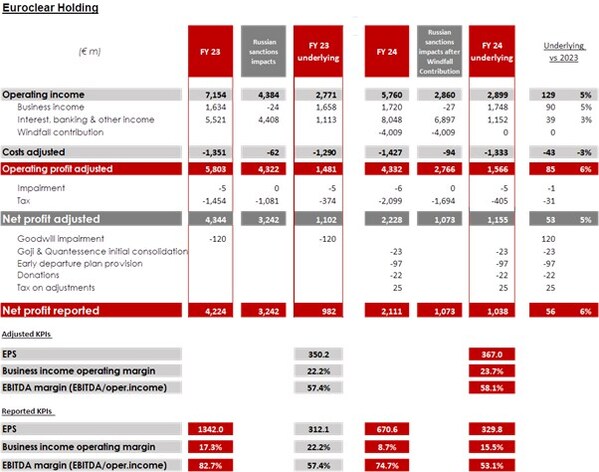 Euroclear's underlying[1]business income and interest earnings reached record levels in 2024