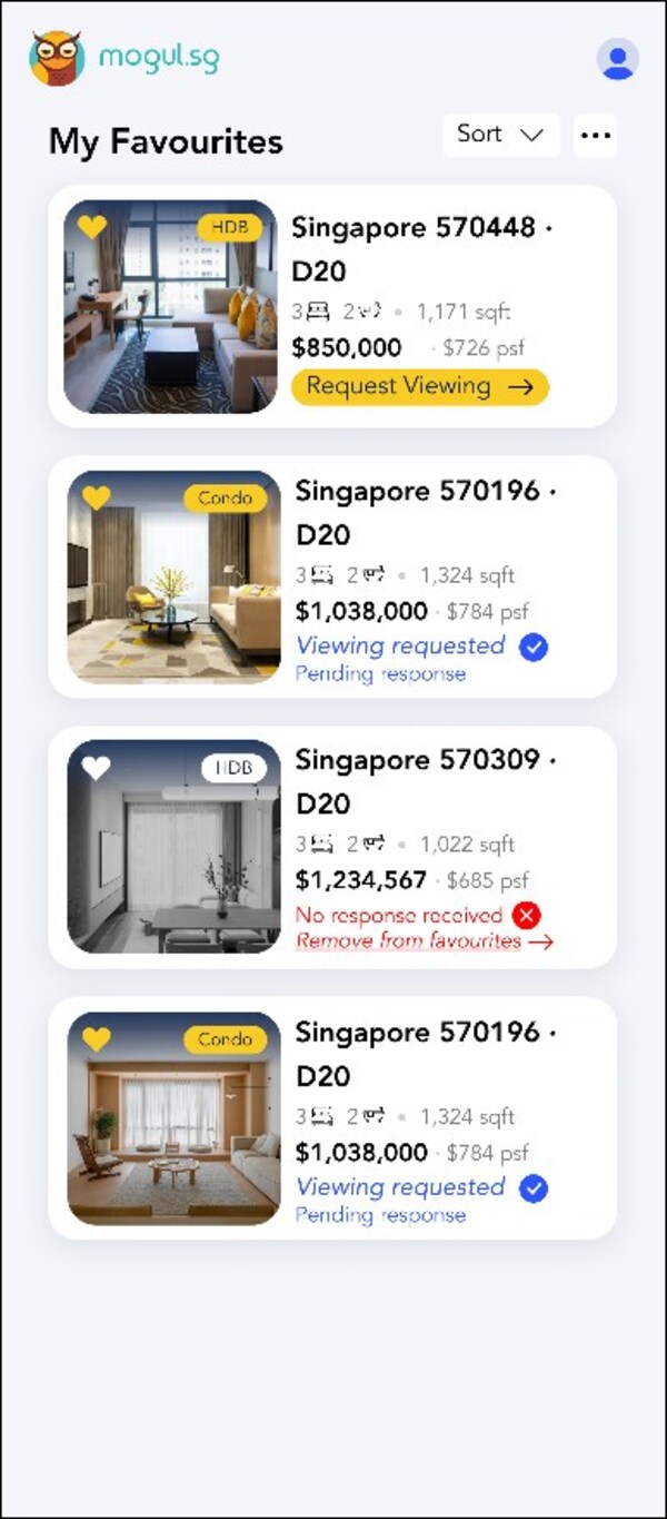 The web-based platform aggregates over 100,000 property listings from major Singaporean real estate portals,99.co,and MOGUL.sg,and lets users easily keep track of their favourites,saving hours from navigating multiple websites.