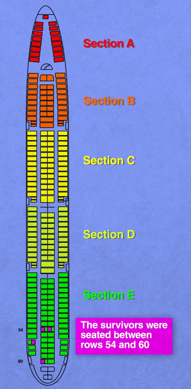 A graph shows where the four survivors of the Japan Airlines flight 123 were seated in the plane(Picture: Wikimedia/Metro)