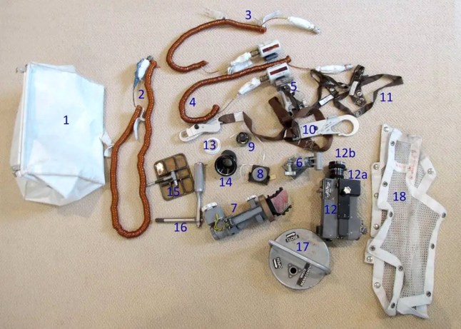This is the whole collection of tools discovered in the bag (Picture: Nasa)